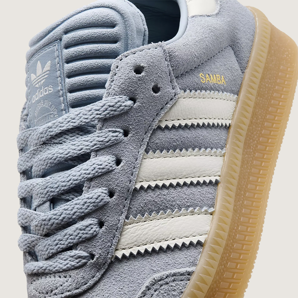 Uno de los elementos más característicos se mantiene intacto: la puntera en T, junto con las 3 bandas dentadas en los laterales, que conectan directamente con la herencia del Samba original. Sin embargo, la diferencia clave está en la suela de goma más gruesa, que aporta una base más estable, una pisada más cómoda y una estética más robusta. El acabado gum añade ese toque retro que hace que el par se sienta auténtico y atemporal.